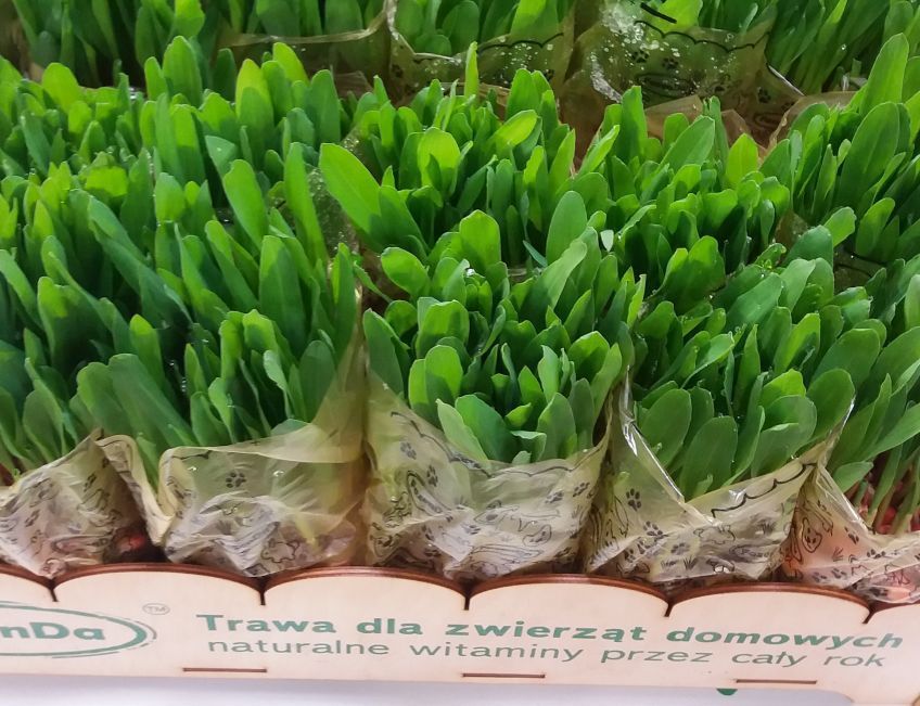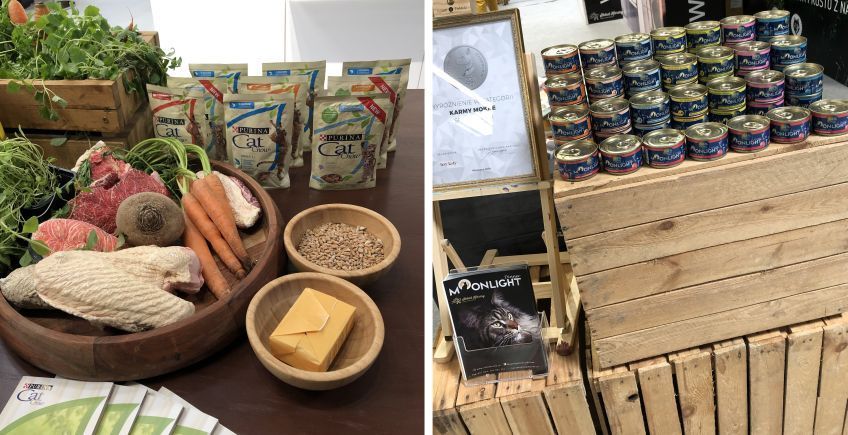 Samo przeglądanie asortymentu karm zajęło nam prawie dwie godziny. Wielu producentów podkreślało naturalne pochodzenie składników swoich produktów już na poziomie aranżacji stoiska. Nie sposób było przejść obojętnie obok pięknej ekspozycji Puriny, czy rzędów puszeczek Moonlight ustawionych na minimalistycznych paletach. Oczywiście nie zabrakło też punktu z kocią (i nie tylko) trawką, gdzie za kilka złotych można było nabyć owies lub inną smakowitą zieleninę dla swojego mruczka.