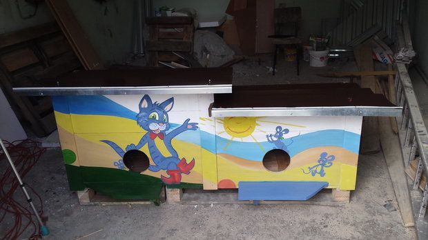 – Zapytałem uzdolnionych mieszkańców naszego ośrodka, czy by nie chcieli zrobić kilku bud. Zgodzili się. Przy pomocy kilku osób zorganizowałem materiał i tak poszło. Pan Krzysiu, które je robi jest osobą bezdomną inwalidą bez nogi. Z wielką przyjemnością wykonuje te budy. Sam miał kiedyś psa i rozumie sprawę. Drugi Pan, które je ozdabia malując je, też jest osobą bezdomną poruszającą się o kuli. Jest uzdolniony artystycznie. Pięknie je maluje. Jak nam wpadnie wspólnie jakiś pomysł na wesoły rysunek to stara się go uwiecznić na budzie. Pomysł z wesołymi rysunkami wszystkim od razu się spodobał – tłumaczy szef placówki.