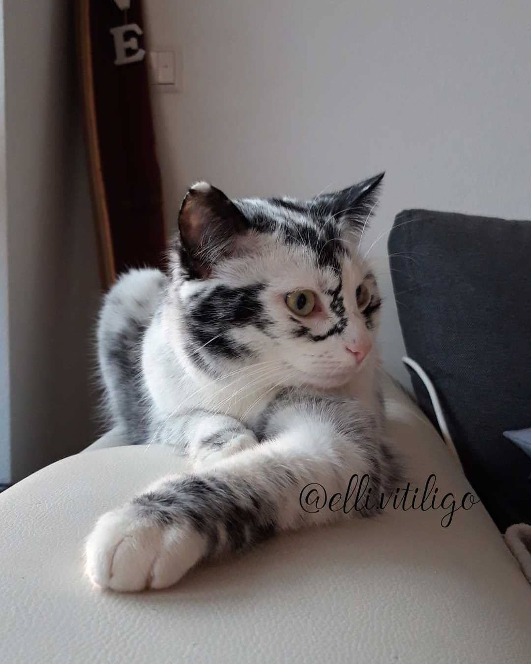 W obawie, że kici coś dolega, Nicole zawiozła ją do weterynarza. To wtedy dowiedziała się, że Elli cierpi na bielactwo nabyte i to w związku z nim zmienia się jej umaszczenie.