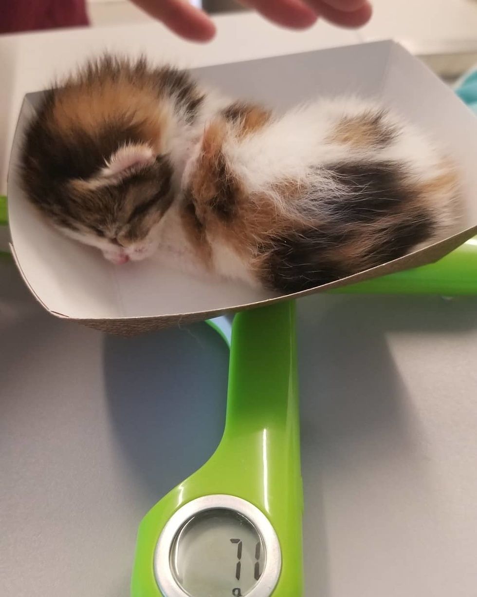 Po zbadaniu kociego noworodka okazało się, że maluszek cierpi na znaczną niedowagę i konieczne będzie podanie pokarmu przez rurkę oraz antybiotyku. Ponadto maleństwo bez ustanku szukało ciepła i bicia serca swojej mamusi. Z pewnością było przerażone.