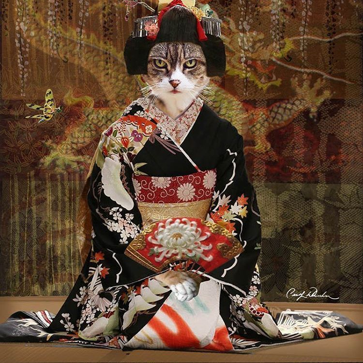 Nie wiadomo, kto ją pierwszy zapoczątkował. Bardzo możliwe, że Japończycy. W końcu kimona to ich narodowy strój. Pierwsze zdjęcia były fotomontażami kocich pyszczków wkomponowanych w sylwetki japońskich gejsz. Ale to było mało. I jakieś takie… sztuczne… Prawdziwy kot zasługuje na prawdziwe kimono, a nie tandetną wklejankę.