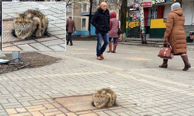 Bury, półdługowłosy kot został bezdomnym. Codziennie przychodzi i siada na ten sam właz. W tym miejscu po raz ostatni widział swoich właścicieli. Czeka.