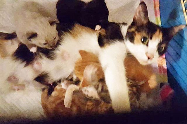 Po przyjeździe na miejsce, pracownicy RSPCA rzeczywiście znaleźli kotkę, na szczęście żywą. Nie była sama. Wpół sparaliżowana, jakoś doczołgała się do swoich 1-tygodniowych kociąt, by się nimi opiekować. Cała rodzinka trafiła do szpitala weterynaryjnego. Badania wykazały, jak rozległy był uraz kotki. Rzucona przez wściekłego mężczyznę za przyczepę (na której była wraz z kociętami), doznała złamania kręgosłupa, nóg i zębów. Została sparaliżowana od połowy ciała w stronę ogona.