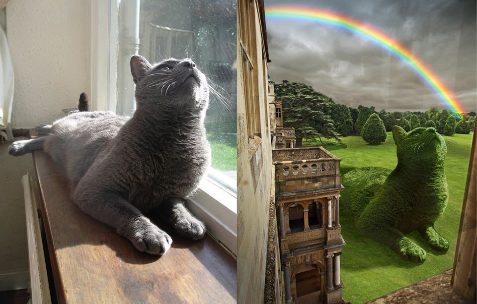 Richard Saunders jest artystą. Surrealistą, ściślej mówiąc. Uwielbia sztukę i koty. Postanowił połączyć te dwie miłości i w efekcie powstał Zielony kot. Nietypowo umaszczone mruczki (a może żywopłoty?) zasiedliły jego fotografie. Imponują wyglądem. To prawdziwe King Koty! Nadzwyczaj łagodne i niewymagające. Towarzyszą mu w pracy, nigdy nie przeszkadzają, nie miauczą, nie domagają się jedzenia ani uprzątnięcia kuwety. Po prostu są – gotowe do podziwiania.