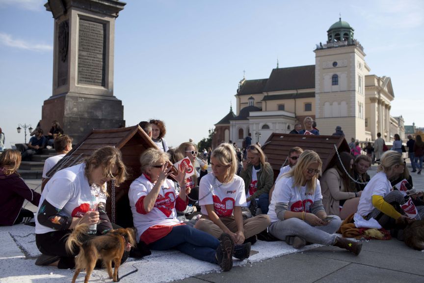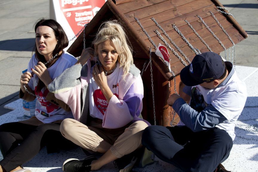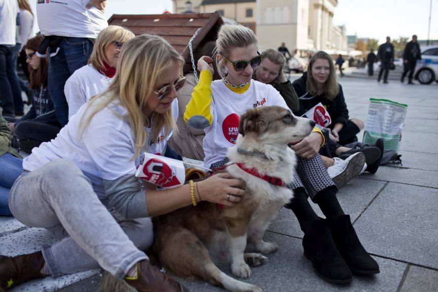 Ktoś mógłby zapytać, dlaczego tu siedzą ludzie. Dlatego, że tylko my możemy dać głos w imieniu zwierząt, które tego głosu nie mają. Człowiek traktowany źle może poprosić o pomoc, pies tego zrobić nie może – mówiła na placu Zamkowym w Warszawie Paulina Król, redaktor naczelna portalu Psy.pl, organizatora akcji.