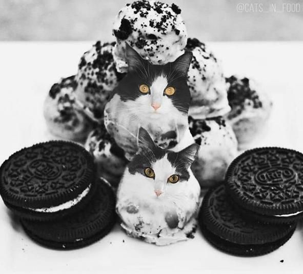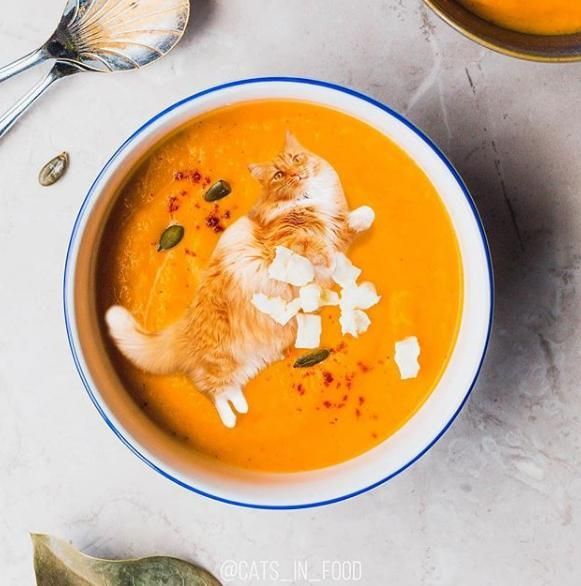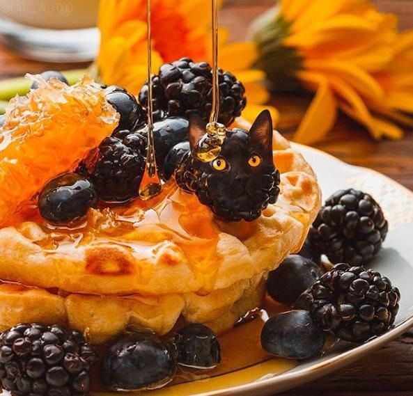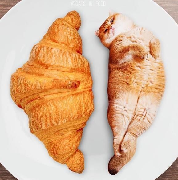 Ksenia wpadła na niecodzienny pomysł ukazywania kotów jako elementów smakowitych posiłków – jej mruczki ukrywają się m.in. w pucharku lodów, wylegują się na naleśnikach lub wyglądają z talerza zupy. Zdjęcia są niezwykle barwne i nieco surrealistyczne, choć trzeba przyznać, że w wielu przypadkach także urocze. Przyszłoby wam do głowy, że kot może przypominać croissanta? No właśnie! Tymczasem na Cats In Food nie ma rzeczy niemożliwych.