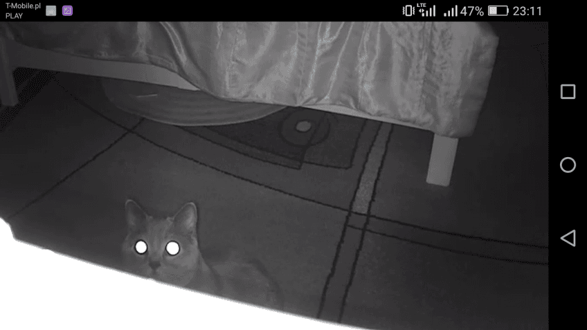 Dziś odkrywam zbawienny wpływ kamerki na moje życie towarzyskie. Impreza na mieście. Właśnie mija kolejna godzina, na dworze od dawna ciemno, a kot sam od rana. Zostać na mieście czy wrócić? Spoglądam w kamerkę, na szczęście podczerwień działa bez zarzutu. Zostaję, bo zauważam, że… kot śpi. Czyli nie tęskni. Wyrzuty sumienia nieco mniejsze. Widzę, że budzi się dopiero, gdy wracam. Uff.