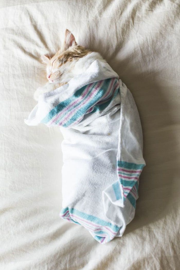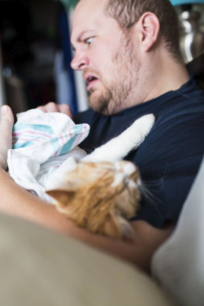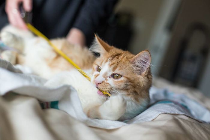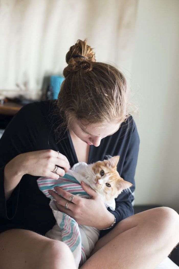 Miłośniczka kotów i fotograf Lucy Schultz przez większość swojego życia opiekowała się małymi kociętami, zajmując się wolontariatem w miejscowym schronisku, ale nigdy nie miała możliwości adopcji własnego pupila. Aż do teraz. Życiowa sytuacja Lucy i jej partnera w końcu na tyle się ustabilizowała, że postanowili zaadoptować własnego puszka. Proces wyboru trwał dość długo, lecz ostatecznie para zdecydowała się na przygarnięcie małego 5-miesięcznego rudzielca z Kolorado. Kiedy przywieźli małą kulkę do domu, ze szczęścia postanowili zorganizować sesję zdjęciową. Nie była to jednak zwyczajna sesja… To była kocia sesja porodowa!