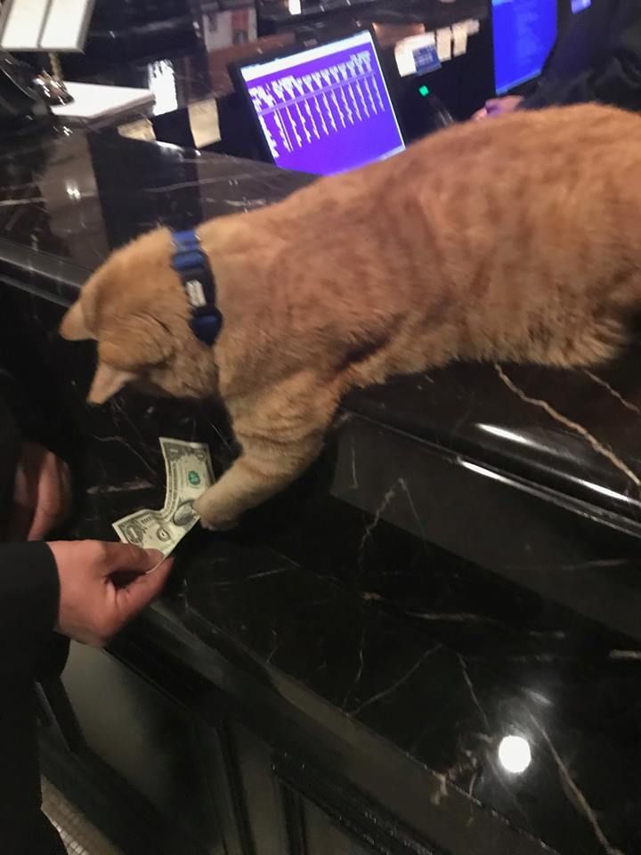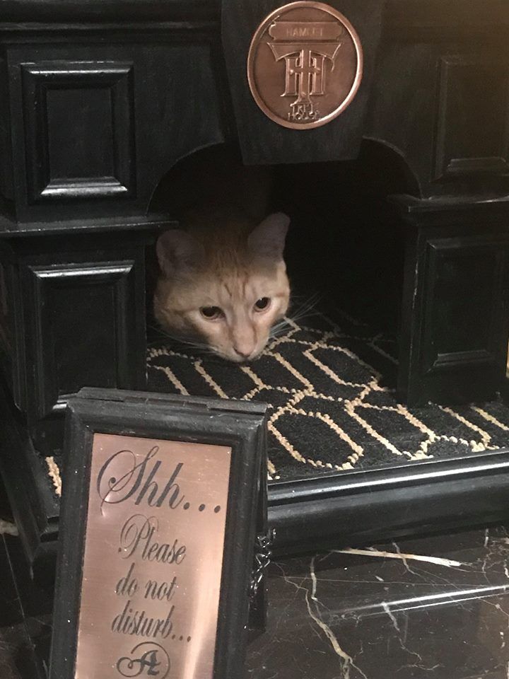 Chociaż pracuje mniej niż rok, to już został ekspertem w kradzieży… serc hotelowych klientów. Rudzielec, który pochodzi ze zdziczałej kolonii na Long Island, przejął rolę kociego ambasadora na miesiąc przed śmiercią swojego poprzednika – Matyldy – kota rasy ragdoll. Oto kot Hamlet i jego historia.