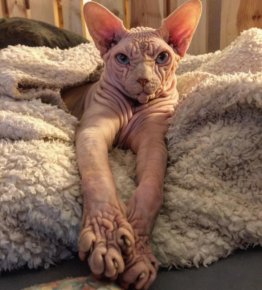 Nawet jeśli nie jesteś fanem tej rasy, to być może ten nietypowy sfinks skradnie twoje serce swoimi zmarszczkami czy niebieskimi oczętami, jak zresztą zrobił to swojej opiekunce czy pozostałym osobom, obserwującym jego profil.