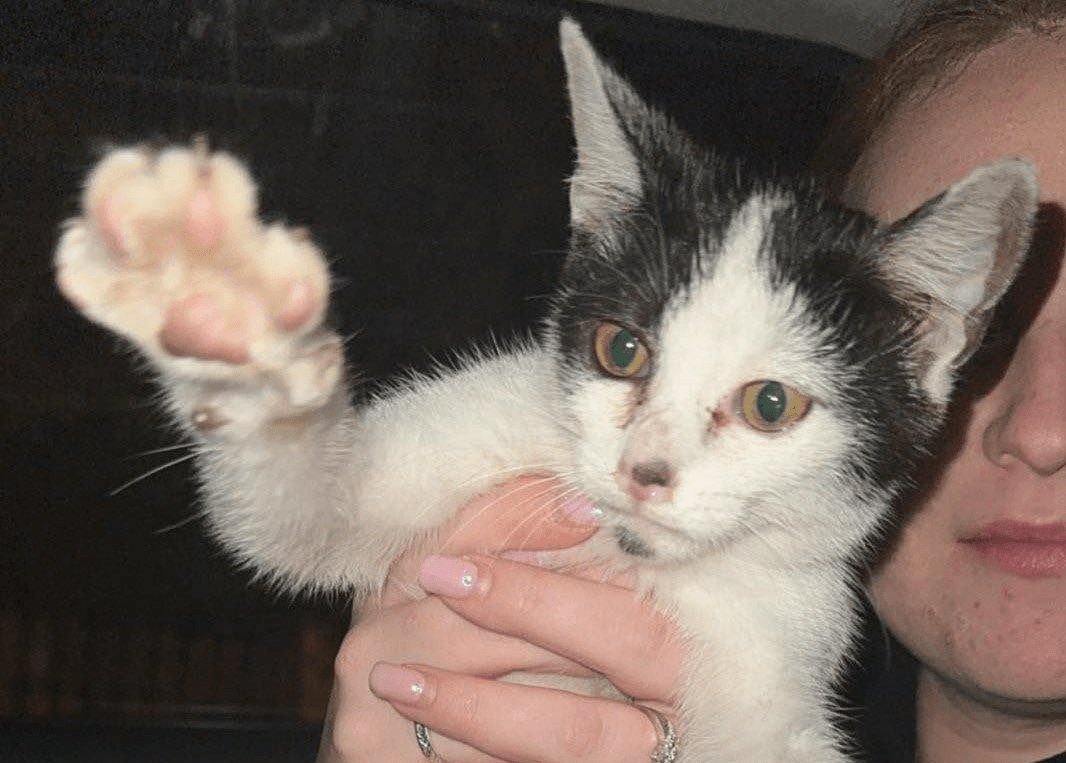 Pchełka, kotka o wdzięcznym imieniu, została znaleziona w okolicach Kłodzka krótko po ustąpieniu powodzi. Z wycieńczoną, urwaną łapką, walczyła o przetrwanie. Nikt nie wie dokładnie, jak doszło do tej tragedii. Może jej łapka ugrzęzła w czasie, gdy woda ją niosła, a może uciekała przed żywiołem i zahaczyła o ostry przedmiot. Pewne jest jedno – jeszcze przed powodzią była widziana w pełni zdrowa, z wszystkimi czterema łapkami. Kiedy została znaleziona, jej stan był dramatyczny.