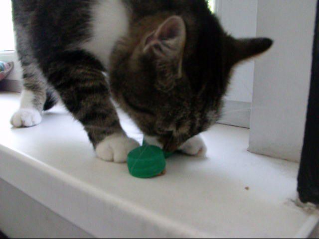 Nakrętki (lub inne małe pojemniczki) napełniamy mokrą kocią karmą ulubioną przez naszego pupila. Nie zakrywamy, wstawiamy do zamrażalnika na 2 minuty. Wyjmujemy i – podajemy kotom, w pojemniczkach lub wyjęte na miseczkę. Proste? A jaka fajda 🙂